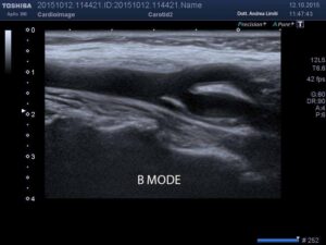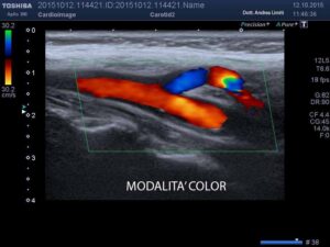 ‘Ecocolordoppler dei vasi epiaortici, ossia delle arterie che portano sangue al cervello ed al volto, è una metodica di indagine che si avvale della combinazione dell’immagine ecografica unitamente alle informazioni fornite dall’uso del color doppler. L’esame consiste nell’appoggiare una sonda ai lati del collo e studiare quindi la morfologia ed il decorso dei vasi, la loro pervietà ( verificandone la presenza di eventuali placche ateromasiche più o meno occludenti l’interno dell’arteria ) ed il flusso di sangue verso il cervello. L’esame viene pertanto eseguito quasi esclusivamente per la valutazione della malattia aterosclerotica che, unitamente alla malattia delle piccole arterie ed alla cardioembolia, rappresenta la causa più frequente di ictus ischemico sia in prevenzione primaria ( ossia in soggetti che non hanno subito eventi cerebrovascolari ma ad alto rischio come possono esserlo i fumatori, i diabetici, gli ipertesi, i dislipidemici…) sia in prevenzione secondaria. Qualora sia già nota una ateromasia dei vasi epiaortici l’esame consente di monitorarne, nel tempo, il decorso ponendo indicazione ad eventuale intervento chirurgico di TEA ( endoarteriectomia carotidea ) o di stenting.